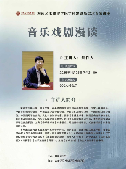 此次学术讲座的成功举办,不仅拓宽了师生的学术视野、深化了对音乐戏剧的认知,更激发了大家对音乐戏剧创作与研究的热情。它为音乐学院在音乐戏剧领域的科研探索与教学创新提供了前沿指引,有力推动了学科建设与艺术人才培养进程。相信是学生成长道路上不可或缺的宝贵经历。